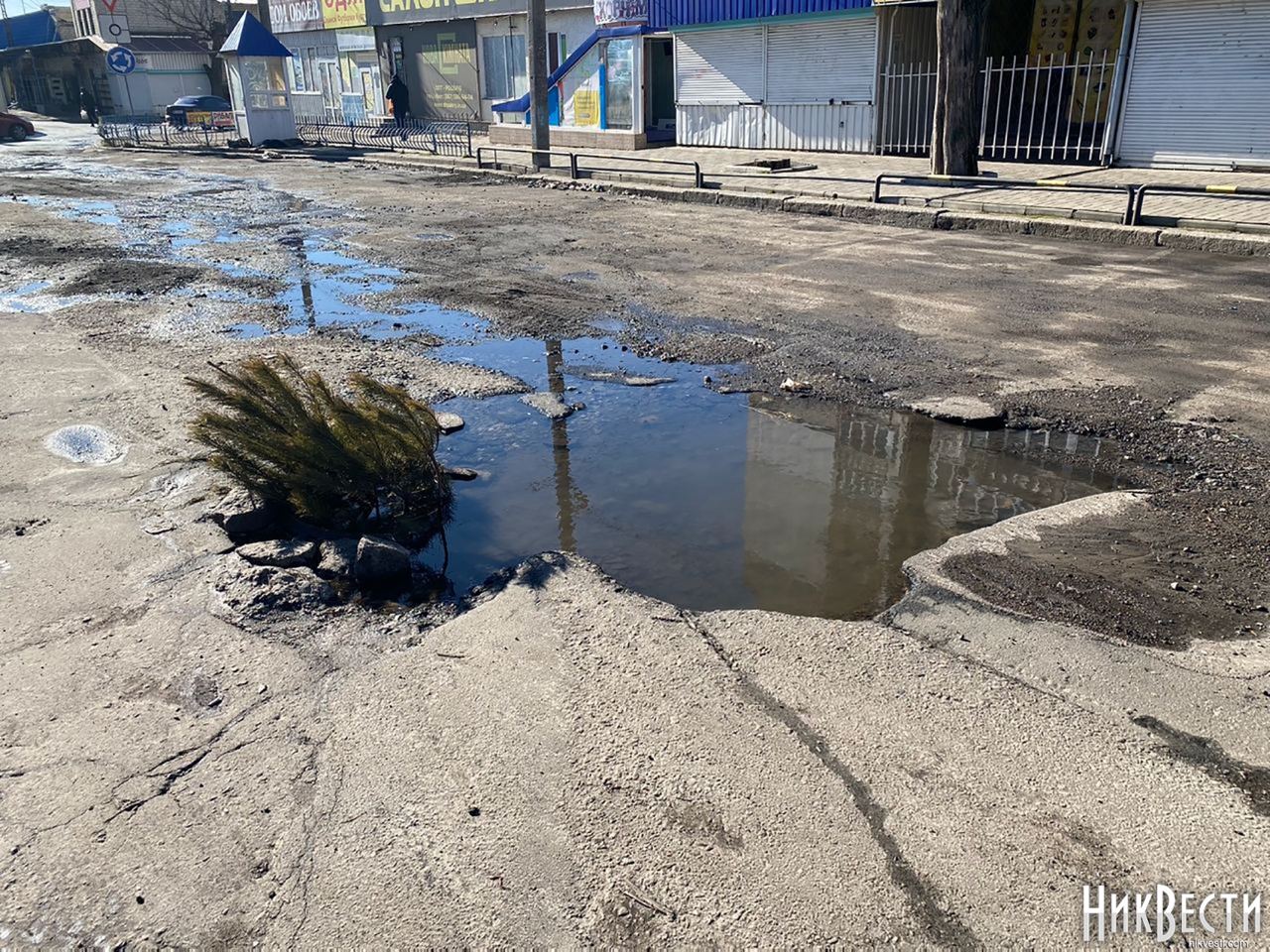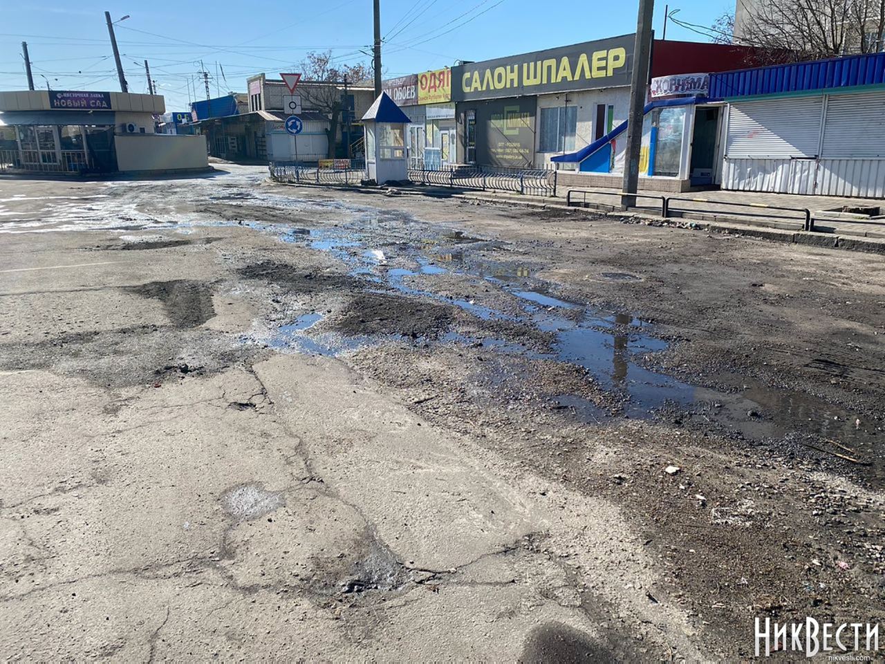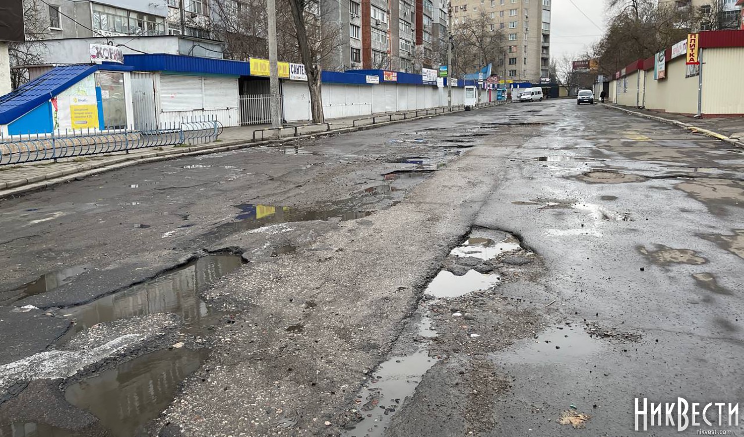 — Дорогу ближче до ринку не робили вже багато років. Ями стоять, їх пару днів тому засипали, дощ пройшов і сьогодні вранці засипали заново. Засипають сміттям регулярно, – розповів «НикВести» місцевий мешканець.