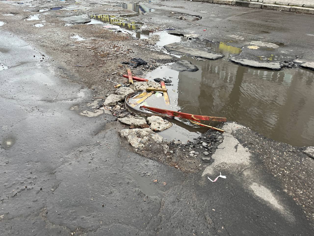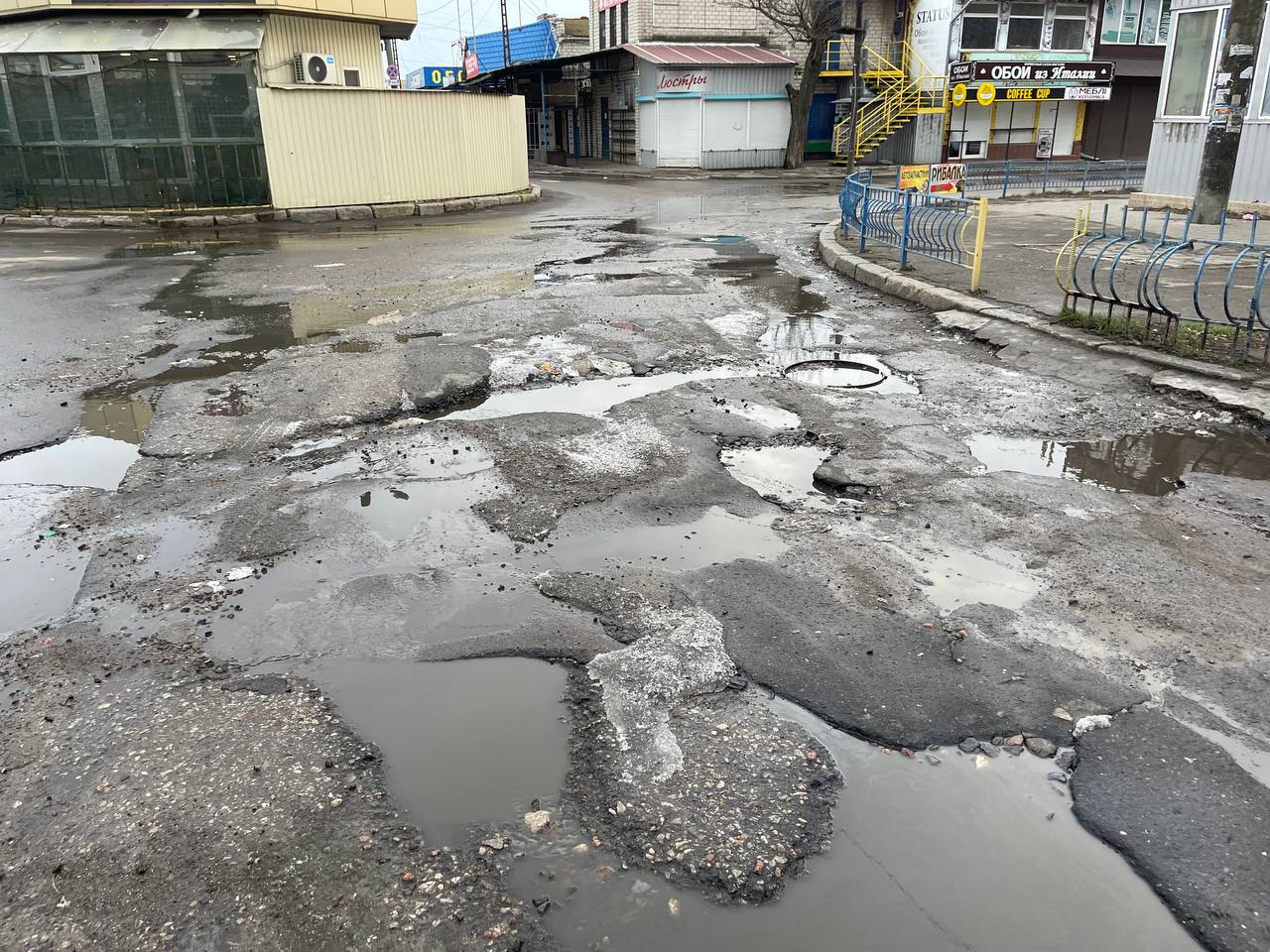Після публікації «НикВести» дорогу біля Центрального ринку в Миколаєві для вигляду «підлатали» асфальтною крихтою