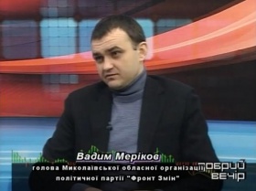 Руководитель Николаевской областной организации партии «Фронт Змін», один из лидеров оппозиции Вадим Мериков 28 января принял участие в передаче Добрый вечер на телеканале НИС-ТВ, где рассказал некоторые подробности грядущих выборов в Николаевской области и ответил на вопросы касательно будущих перспектив объединения оппозиционных сил.