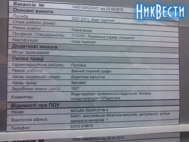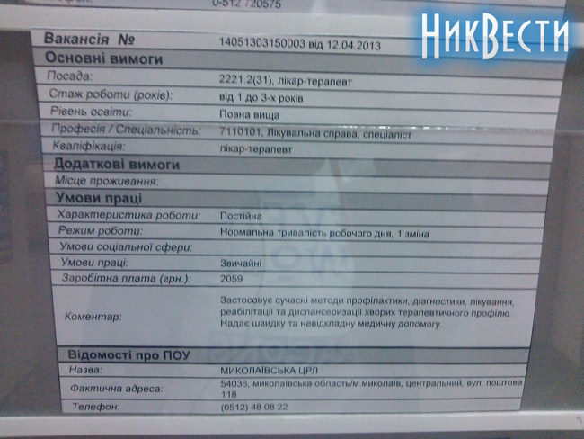 Так, к примеру, в Николаевскую Центральную районную больницу требуется врач-педиатр, которому готовы платить 2059 гривен в месяц. Форма работы: постоянная, 1 смена.