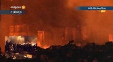 Защитники баррикад бросают в БТР и "беркутовцев" коктейли Молотова. В ответ со стороны милиции полетели светло-шумовые гранаты.