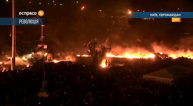 Вечером, в 20:00 силовики начали штурм площади Независимости в Киеве со стороны Европейской площади и улицы Институтской с помощью бронетехники. Со стороны Европейской площади ближе к 20.00 беркутовцы и бойцы внутренних войск выстроились в боевой строй.