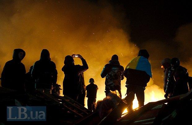 Майдан со стороны Грушевского и Институтской продолжает гореть.