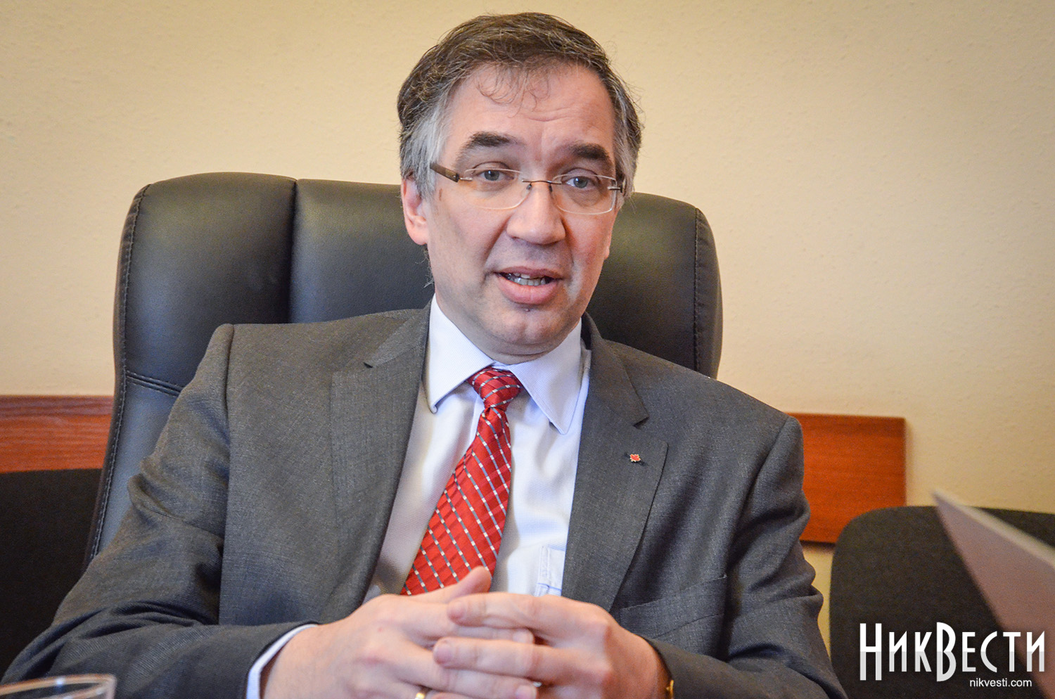 — Мы говорили о ситуации в области и в городе, о том, что уже делается по линии сотрудничества, потому что сотрудничество может проводиться и без визита посла. Я приехал, когда проекты уже начались. И с областью это большой плодово-овощной проект, это 4 южные области и 20 миллионов в течение 5 лет. Николаевская область это приблизительно четвертая часть этого проекта. 2000 производителей уже включены в этот проект. Ну и меньший но очень срочный проект – Агентство развития Николаева. Да и в целом для меня был интересен Николаев как феномен после прошлогодних городских выборов.