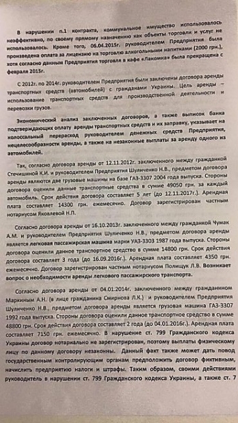 Буквально недавно проверка, которую проводили заместители мэра, начальники управлений, депутаты городского совета Вячеслав Апанасенко, Татьяна Казакова, Владислав Ентин и Наталья Манзюк, была окончена, и служебная записка за подписью вице-мэра Юрия Степанца легла на стол городского головы с рекомендацией разорвать контракт с Шуличенко на основании ряда нарушений его пунктов с ее стороны.