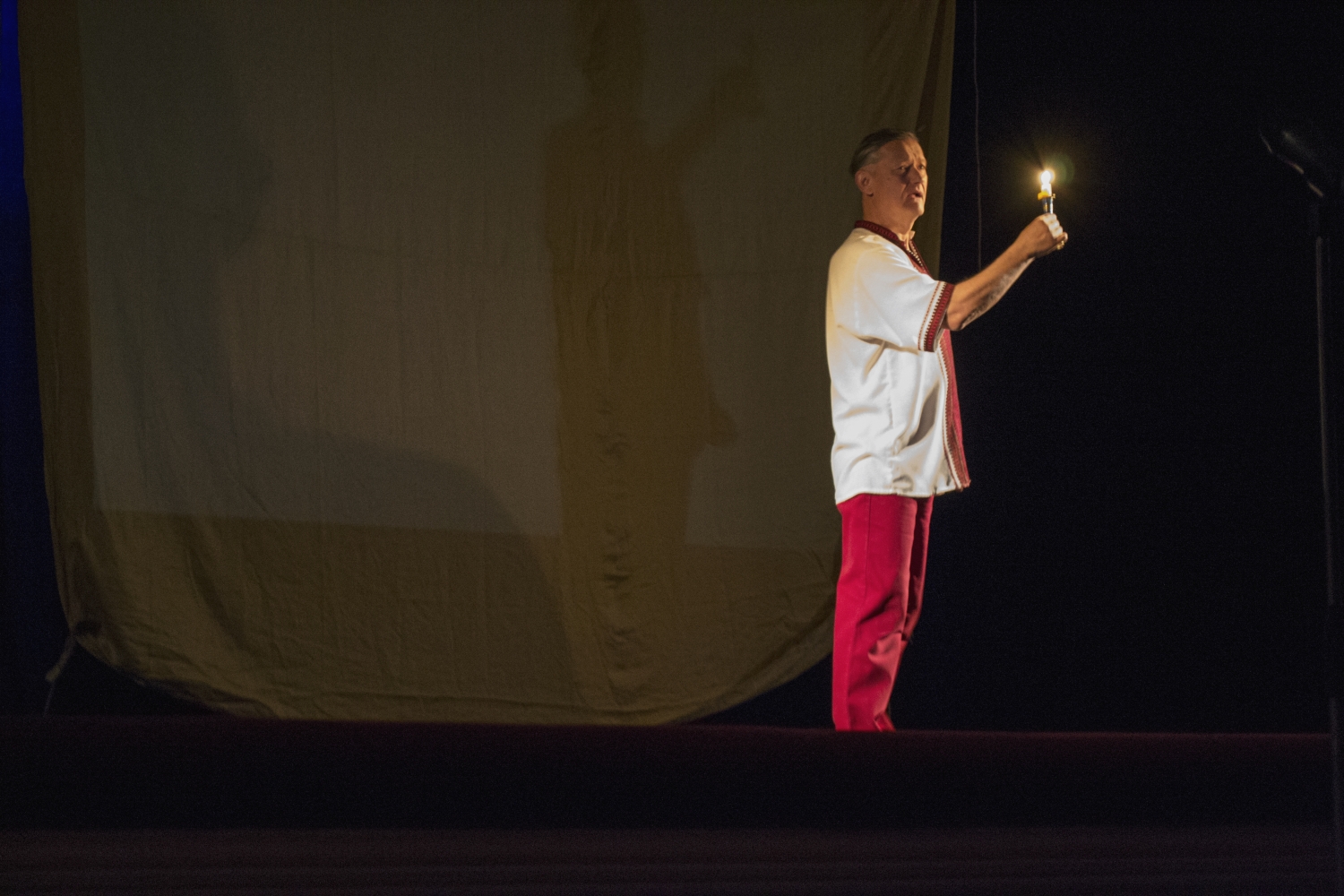 Как пояснил сам Владимир, то спектакль рассчитан на малую сцену, когда зрители вместе с исполнителем становятся одним целым, имея визуальный контакт один с другим, а на фестивале «Не промовчи Шевченка у собi» был исполнен на большой сцене Русского театра.