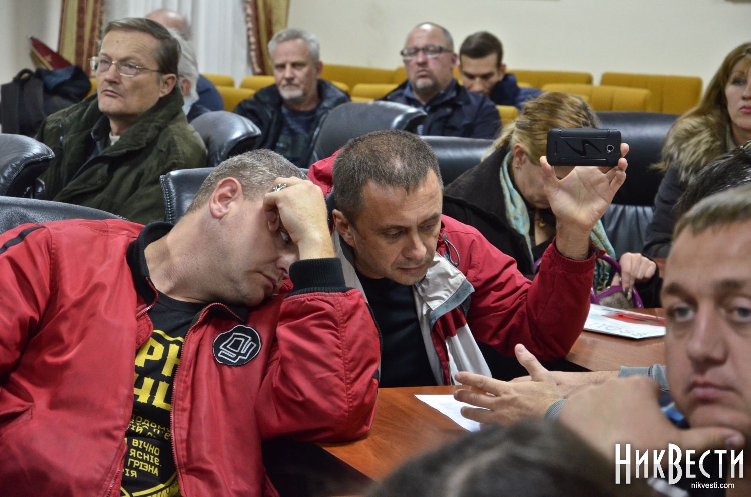 Экс-депутат Анатолий Николенко ответил, что это он председатель «Люстрационного совета Николаевщины», а устав, если надо, покажет. В свое время он был депутатом облсовета от «Батьківщини», верно служил Забзалюку, а сейчас известен, пожалуй, только тем, что выделил для «Правого сектора» помещение под офис, о чем сам сказал в ходе заседания.