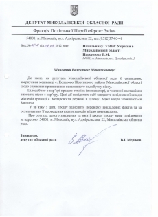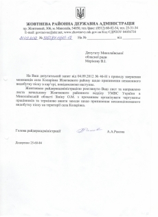 Депутатами были направлены обращения в Жовтневую РГА, облУВД, главе Коларовского сельского совета.