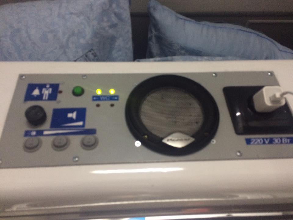 Элементы комфорта: подлокотники на посадочных местах, стандартный стол в купе, выдвижной столик на среднем посадочном месте, "пульт управления полётом" (см.фото) с возможностью вызвать проводника и розеткой - одной на шестерых пассажиров! Ну и верхние полки, на которых теоретически могут занять горизонтальное положение два человека ! А чё, первый класс же!