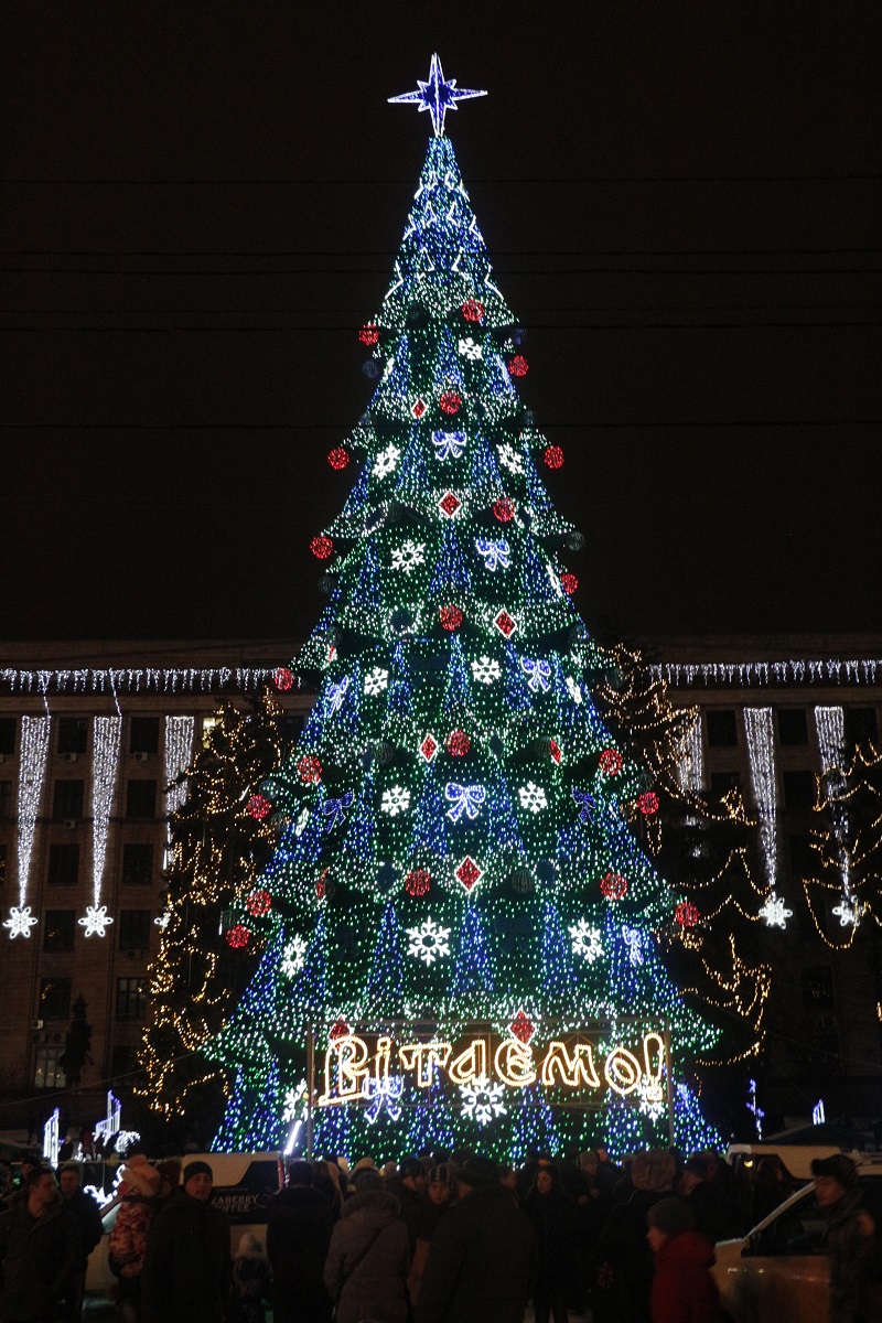 В Днепре новогоднюю елку открыли 24 декабря. 28-метровая новогодняя красавица установлена на площади Героев Майдана. Там также начал работу новогодний городок, который будет встречать гостей до 22 января. Главную праздничную площадку открыли зрелищным шоу LED-барабанщиков и концертом музыкальных групп. Как сообщает информационное агентство «УНИАН», посмотреть на открытие елки собралось около 5 тысяч днепрян.