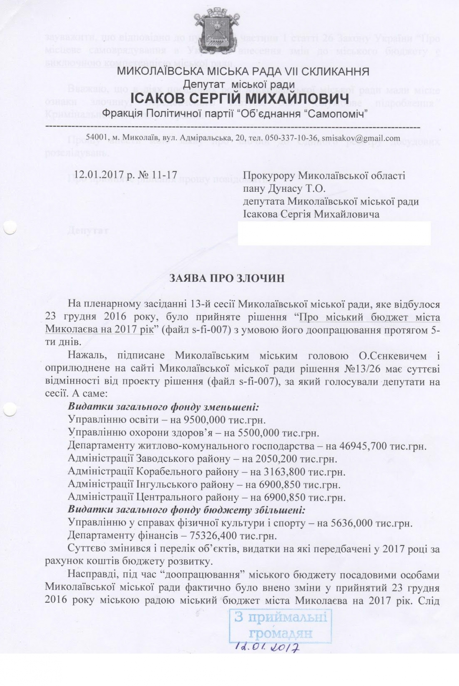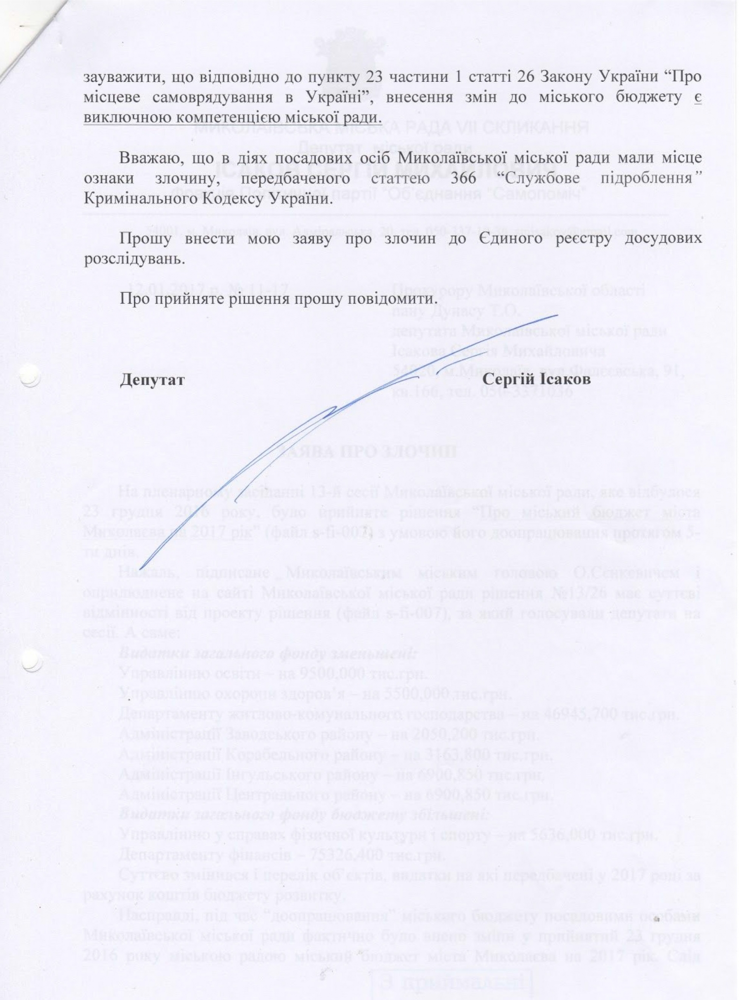 Суть содеянного заключается в том, что 23 декабря 2016 года, на 13-ой сессии городского совета, депутаты проголосовали за один проект бюджета на 2017 год, а городской голова подписал совсем другой документ, отличающийся от проголосованного в сессионном зале.