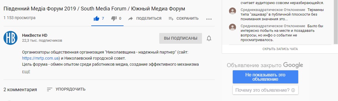 1153 перегляди, 7 лайків і два коменти. Один глядач написав он-лайн, що йому було б цікаво подивитись, але він не знав про початок… Але ж форум – це дуже цінний контент. Ну як порівнювати з футболом чи серіалами. Для кого?