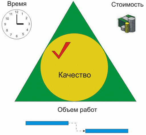 Из теории управления известна взаимосвязь между стоимостью, объемом и сроками выполнения работ, а также их качеством.
