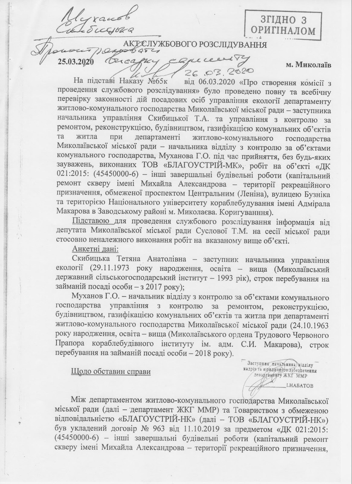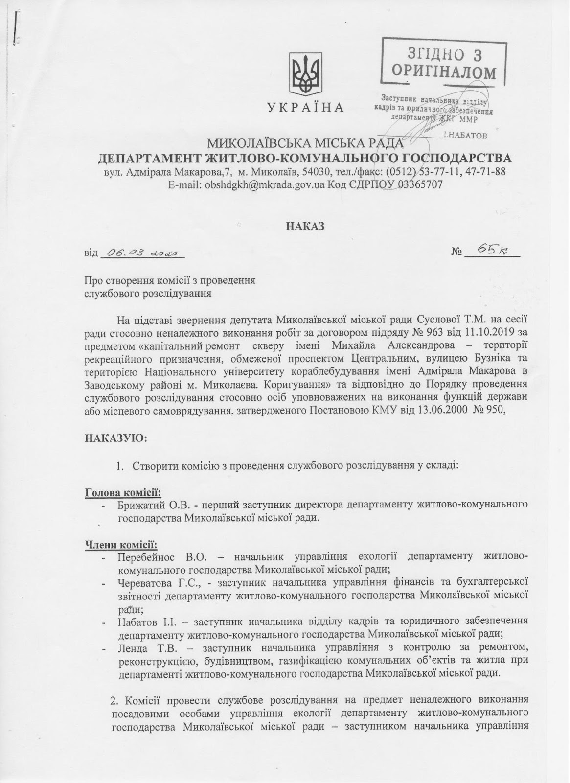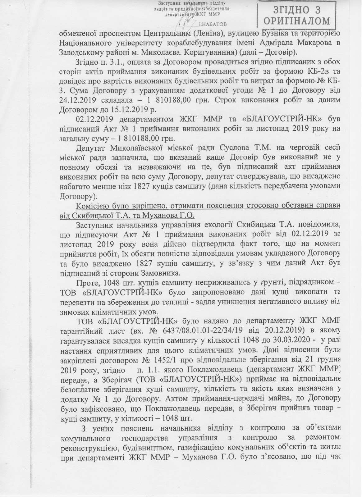 Уже на следующий день в сквере собралась представительная делегация департамента ЖКХ (заказчика работ) во главе с его директором, Сергеем Кореневым. Обследование проходило под пристальным контролем Андрея Ермолаева, директора департамента по противодействию коррупции, в присутствии технадзора Муханова и не представившегося представителя подрядчика, компании ТОВ «Благоустрій-НК».