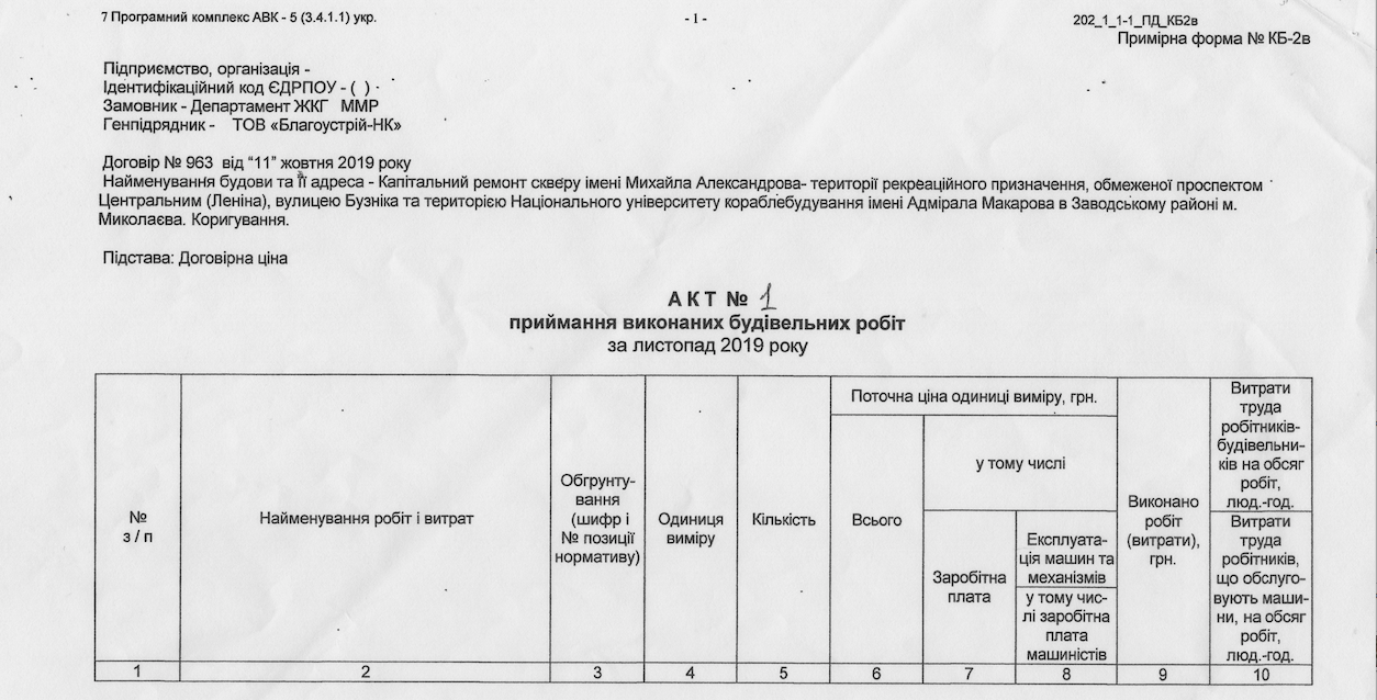 В случае со сквером стоимость и объемы ремонтных работ были зафиксированы в договоре, заключенном с победителем, компанией ТОВ «Благоустрій-НК», по результатам торгов на PROZORRO.