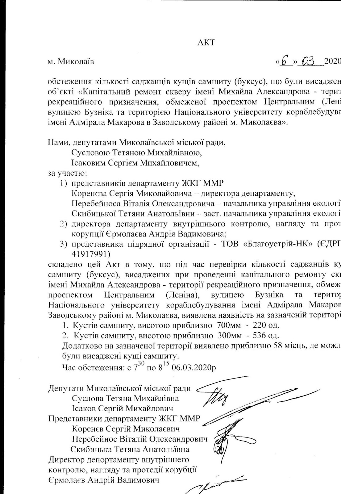 Пересчет проводился при непосредственном участии Татьяны Скибицкой, заместителя начальника управления экологии департамента ЖКХ. Именно она подписала акт приемки выполненных работ, в соответствии с которым все 1827 кустов самшита, предусмотренных проектом, были высажены в грунт.