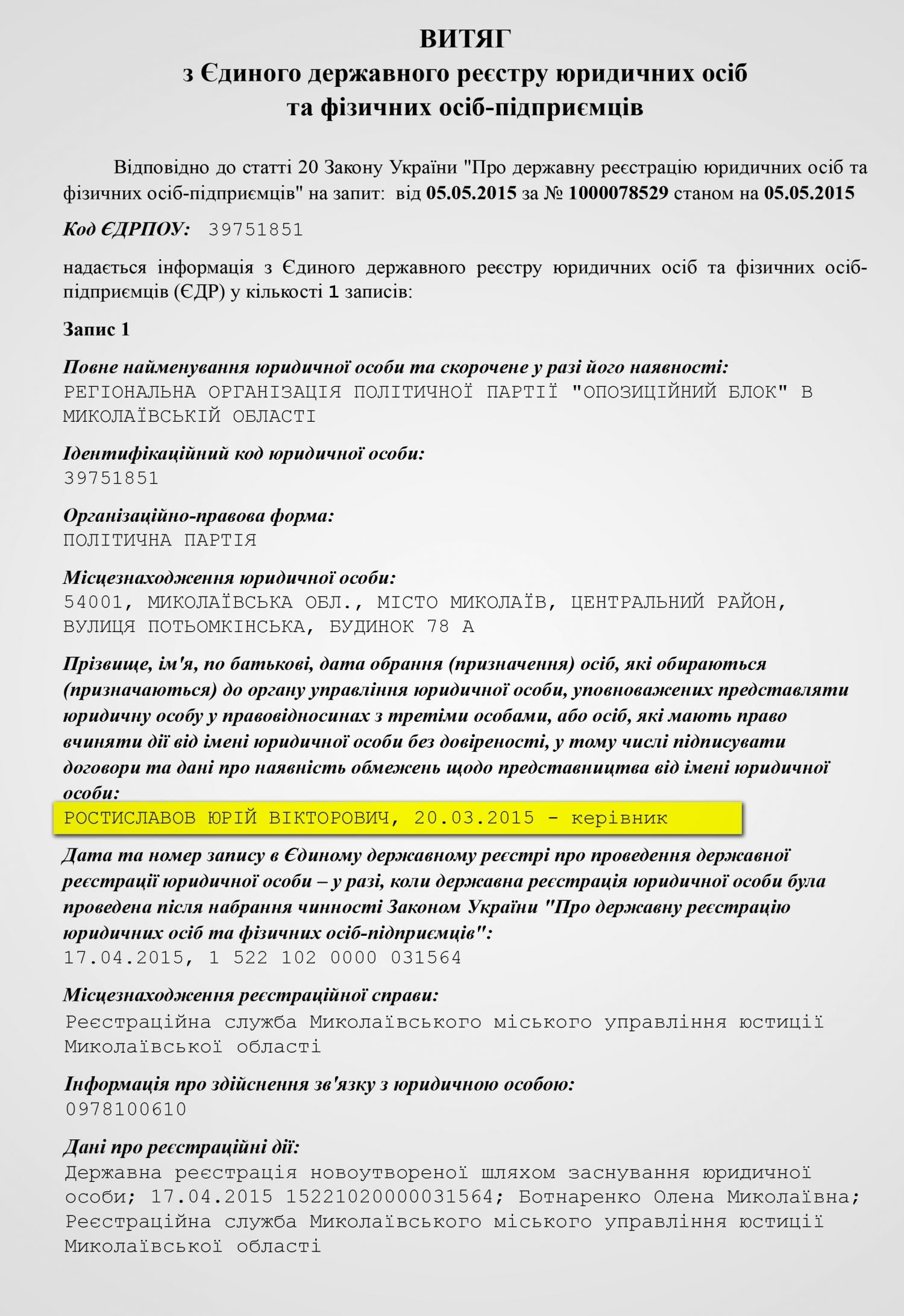 Уже три недели, как председателем Региональной организации политической партии «Оппозиционный блок» в Николаевской области является никому неизвестный Ростиславов Юрий Викторович.