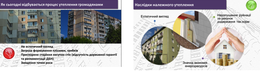 9. Регулярно проводяться освітницькі семінари для ОСББ на тему: проведення енергоаудиту у багатоповерхових будинках та компенсаційні програми по «теплим кредитам».