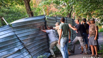 В Николаеве 22 августа общественники демонтировали забор на незаконной стройки в микрорайоне Леваневцев, которая принадлежит скандальной зоозащитнице Лидии Шуст