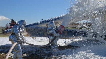 На территории аэропорта «Николаев» прошли совместные учения по тушению условного пожара