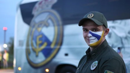 Украинские пограничники с разрисованными лицами встретили футболистов «Реал Мадрид» и «Ливерпуль» прямо с самолета