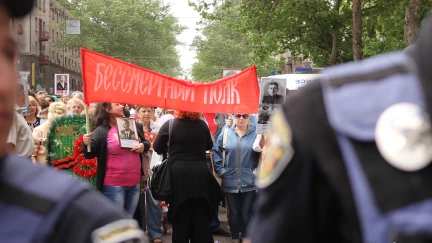 Сегодня, 9 мая в Николаеве прошла скандальная акция «Бесcмертный полк» участники, которой маршировали с запрещенными «Георгиевскими лентами», выкрикивая провокационные лозунги.