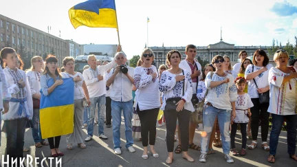 Николаевцы в День Независимости провели флешмоб «Україна єднає» и скромный «Мегамарш вышиванок»