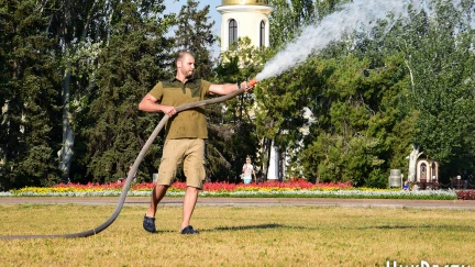 Сегодня, 26 июля, активные николаевцы собрались на акцию на Соборной площади Николаева, в рамках которой полили газон, который засох из-за отсутствия полива.