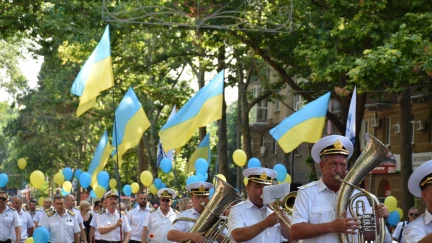 30 июня, работники николаевских портов собрались на главной улице города, чтобы, в честь своего профессионального праздника, пройти торжественным парадом к памятнику героям Ольшанцам