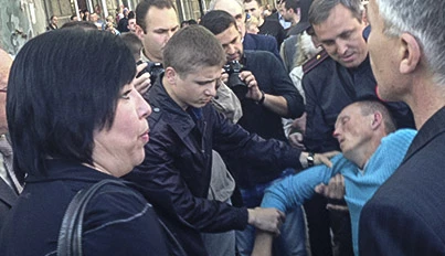 Бывшие коммунисты с красным знаменем пытались провести шествие на Соборной — все закончилось дракой