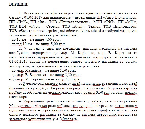 При этом заместитель Николаевского городского головы по вопросам инфраструктуры Антон Турупалов заявлял, что в ближайшее время в городе не будут повышаться тарифы на проезд в общественном транспорте.
