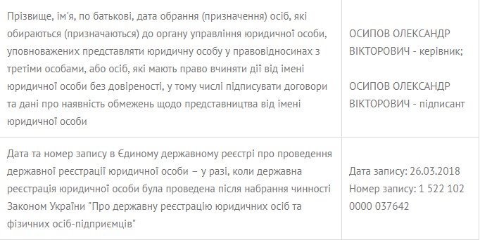 Стоит отметить, что согласно данным Единого государственного реестра юридических лиц, ООО «Грандпол» зарегистрировано в городе Николаеве, на улице Океановской, 58-А, 26 марта 2018 года. Ее учредителем и конечным бенефициаром является Александр Осипов. Уставной капитал составляет всего 1000 гривен, а основной специализацией является предоставление ландшафтных услуг.