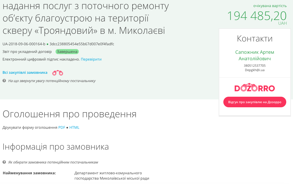 Департамент ЖКХ Николаевского городского совета в обход тендерной процедуры отдаст 194 тысячи гривен за реконструкцию сквера фирме, созданной 5 месяцев назад.