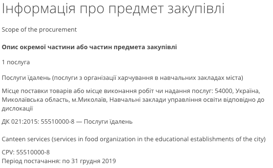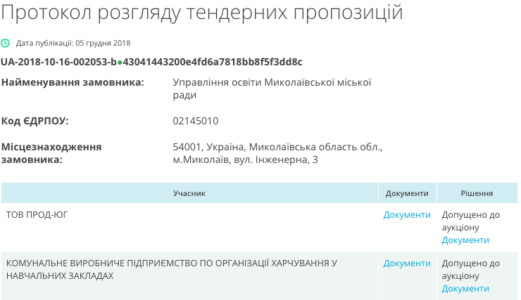 Напомним, что в 2018 году управление образования Николаевского городского совета после проведения торгов собиралось заключить договор на оказание услуг по организации питания в учебных заведениях Николаева с одесским предприятием «Олімпія Сервіс».