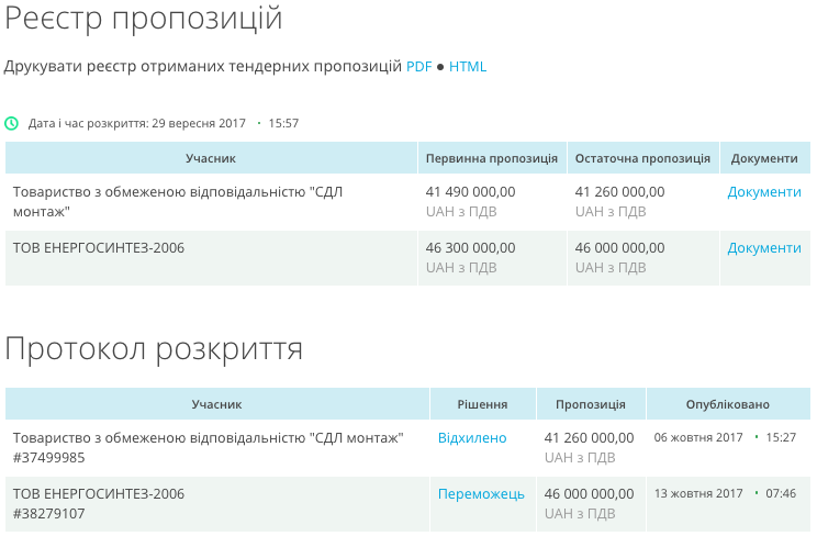 Об этом свидетельствуют данные системы электронных закупок Prozorro.