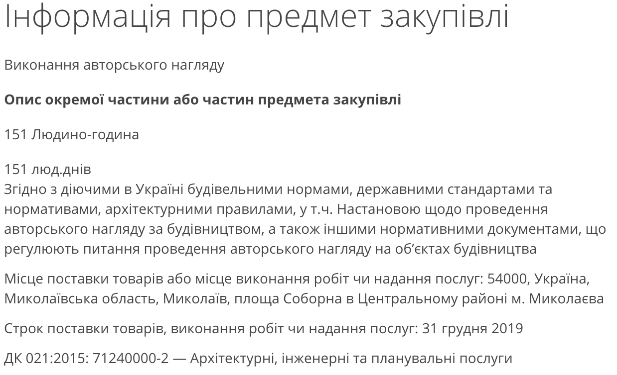 Стоит отметить, что Департамент ЖКХ Николаевского городского совета 25 марта 2019 года перечислил на счет ООО «Урбан Констракт» 1 миллион 496 тысяч 931 гривну за изготовление проекта реконструкции Соборной площади.