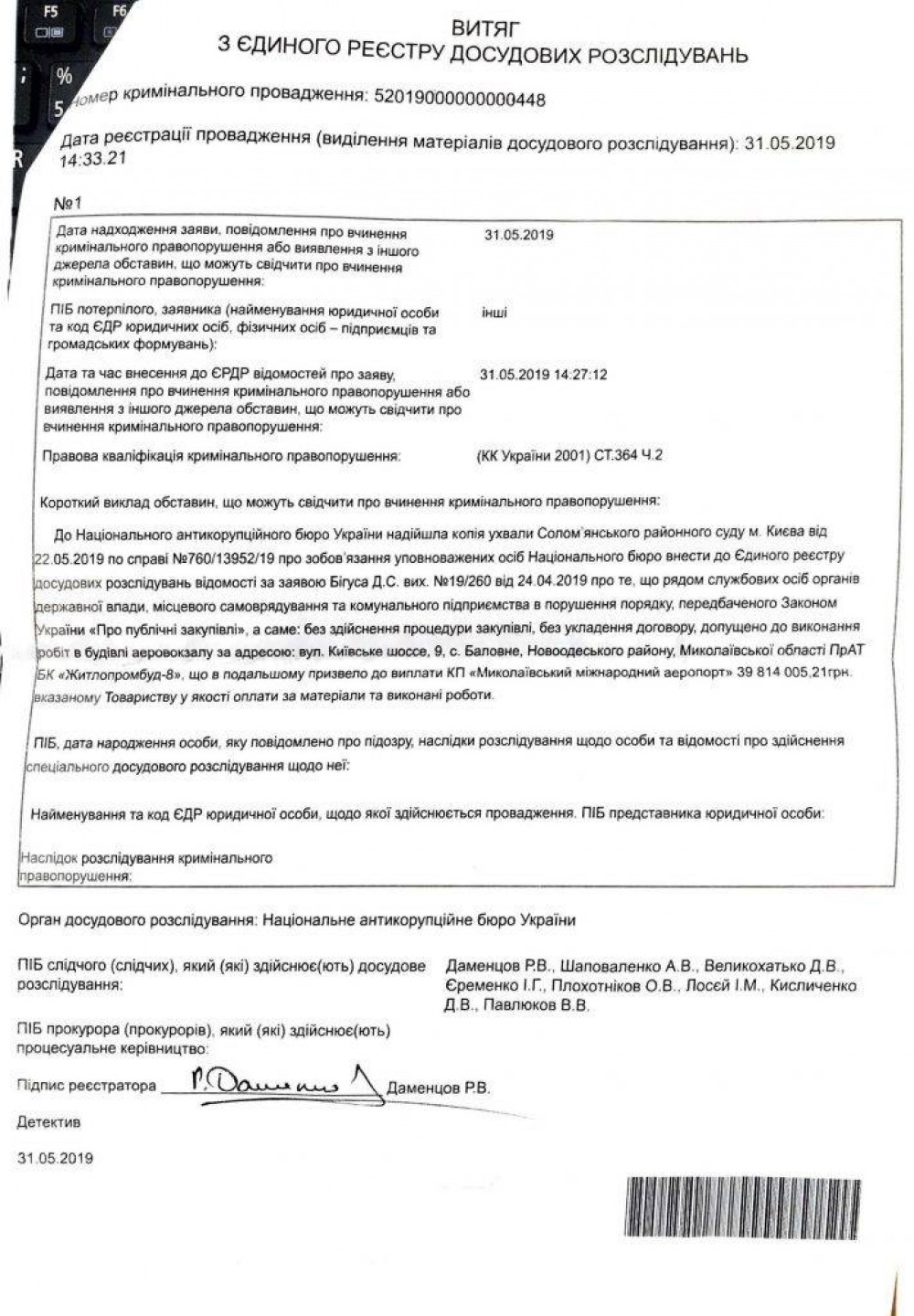 Соломенский суд города Киева обязал Национальное антикоррупционное бюро открыть производство в связи с вероятными нарушениями при ремонте здания николаевского аэропорта компанией «Жилпромстрой-8».