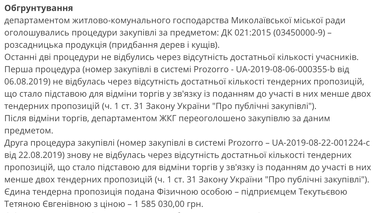 Напомним, ранее Департамент ЖКХ Николаевского горсовета закупил у этого же предпринимателя деревьев и кустов на 1,2 миллиона гривен.