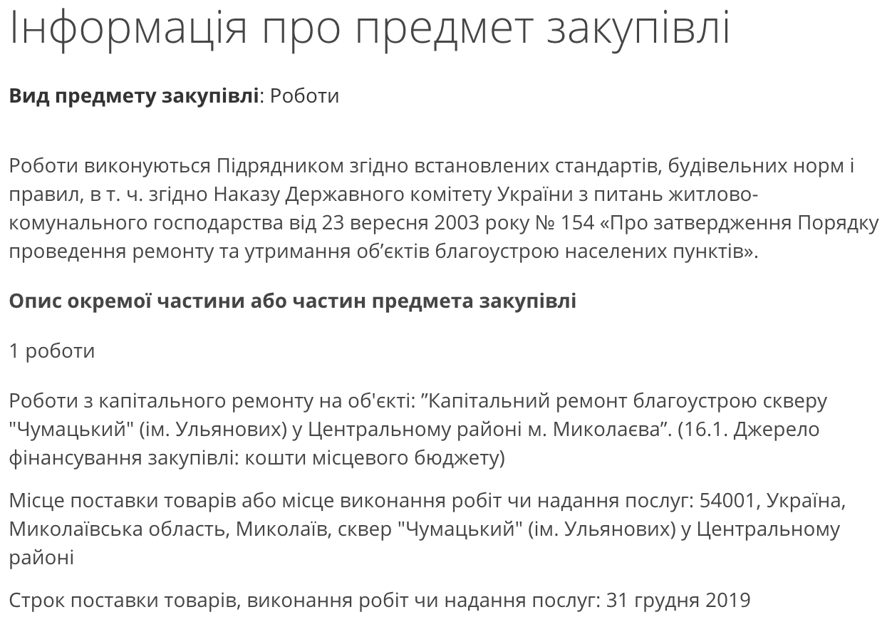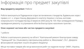 Согласно данным ресурса, чиновники 8 октября заключили договор с частным предприятием «Стритбилд» по капитальному ремонту сквера «Чумацький», который находится на Терновской развилке, за 955 тысяч 627 гривен.