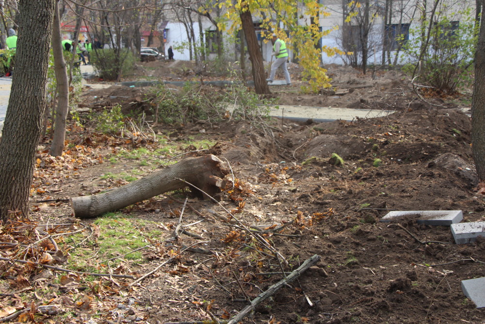 Как сообщил Юрий Яковенко, директор ООО «Благоустрій-НК», выполняющего работы по капремонту сквера, обрезкой деревьев занимался другой подрядчик - ООО «Укрбиорост».
