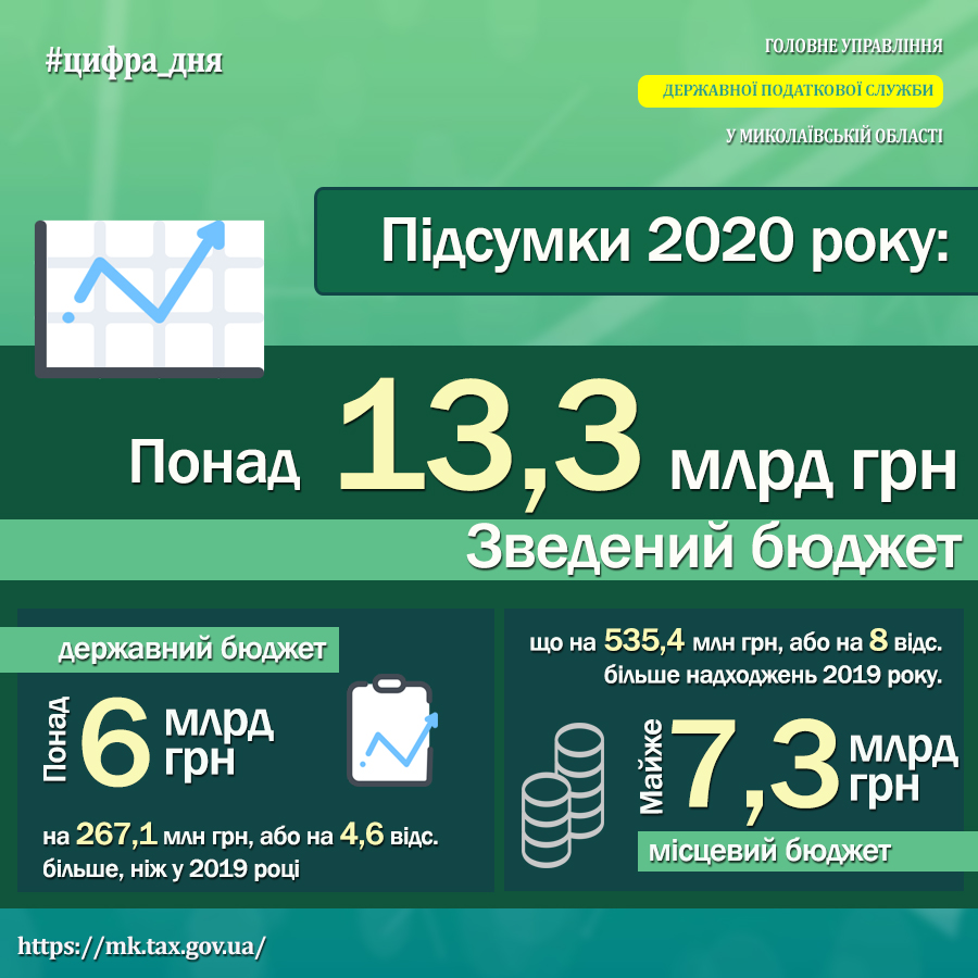 По итогам 2020 года Главным управлением ГНС в Николаевской области обеспечено в бюджеты всех уровней больше 13,3 миллиардов гривен.