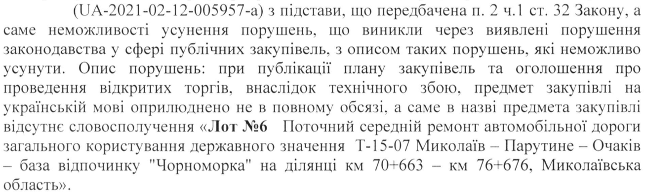 Однако, 15 февраля тендерный комитет принял решение отменить закупку. Причиной тому стала техническая ошибка при публикации тендера на площадке ProZorro.