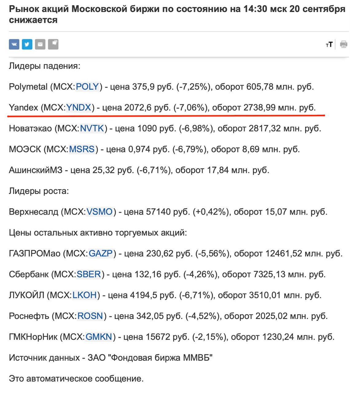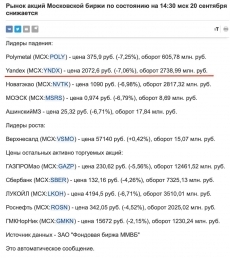 Зокрема, впали акції «Газпрому», «Лукойлу», «Сбербанку», «Яндексу» та інших.