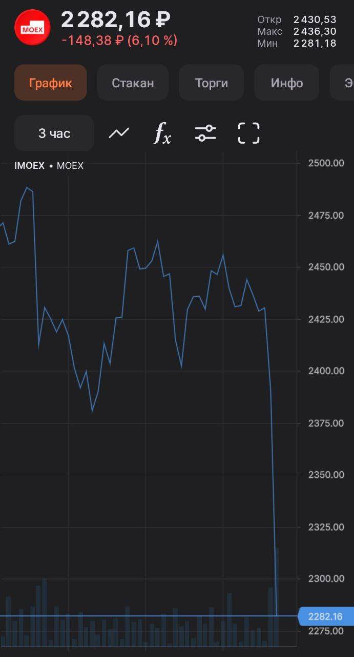 На російських біржах почався обвал акцій через новини про «референдуми» та поправки до КК про мобілізацію та воєнний стан