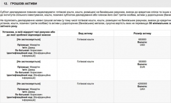 Кроме того, у нардепа имеются активы в драгоценных банковских металлах, стоимостью 276 тысяч 120 гривен.