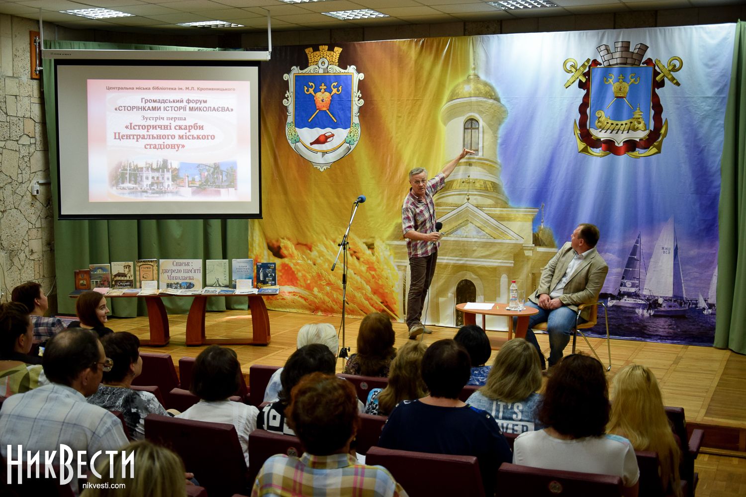 12 сентября в библиотеке имени Марка Кропивницкого николаевские историки, археологи, краеведы, архитекторы и экологи собрались на первое заседание общественного форума на тему «Исторические сокровища Центрального городского стадиона», посвященного перспективам развития исторического места, известного как Спасское урочище.