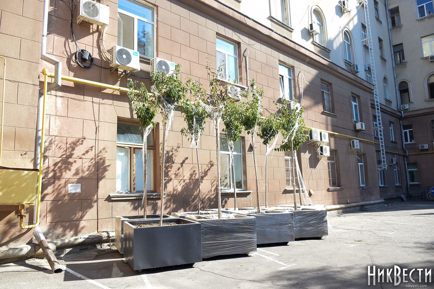 Сегодня, 11 сентября сотрудники коммунального предприятия «ЭЛУ автодорог» привезли и выгрузили на заднем дворе Николаевского городского совета 10 кадок, которые в дальнейшем перенесут на Соборную площадь. Сами кадки представляют собой металлические конструкции квадрантной формы, наполненные землей с саженцем дерева.