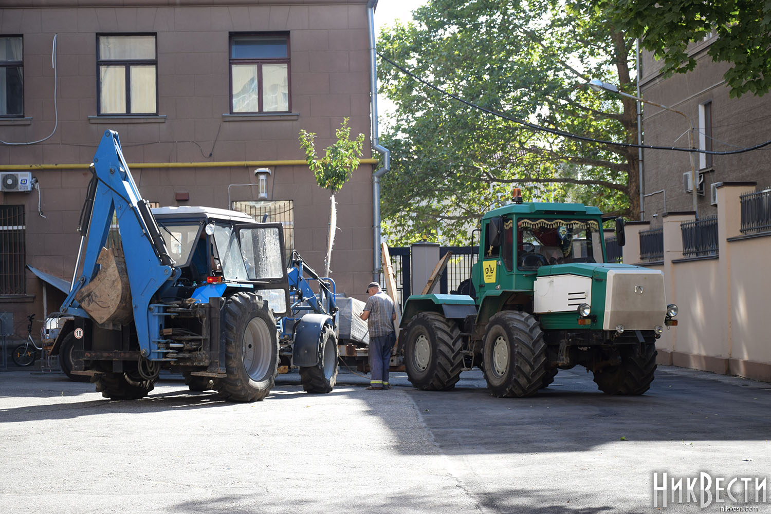 В Николаев привезли кадки с живыми деревьями, которые по проекту должны быть установлены на Соборной площади в рамках ее реконструкции.