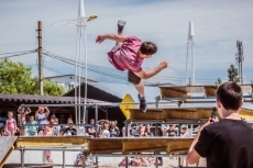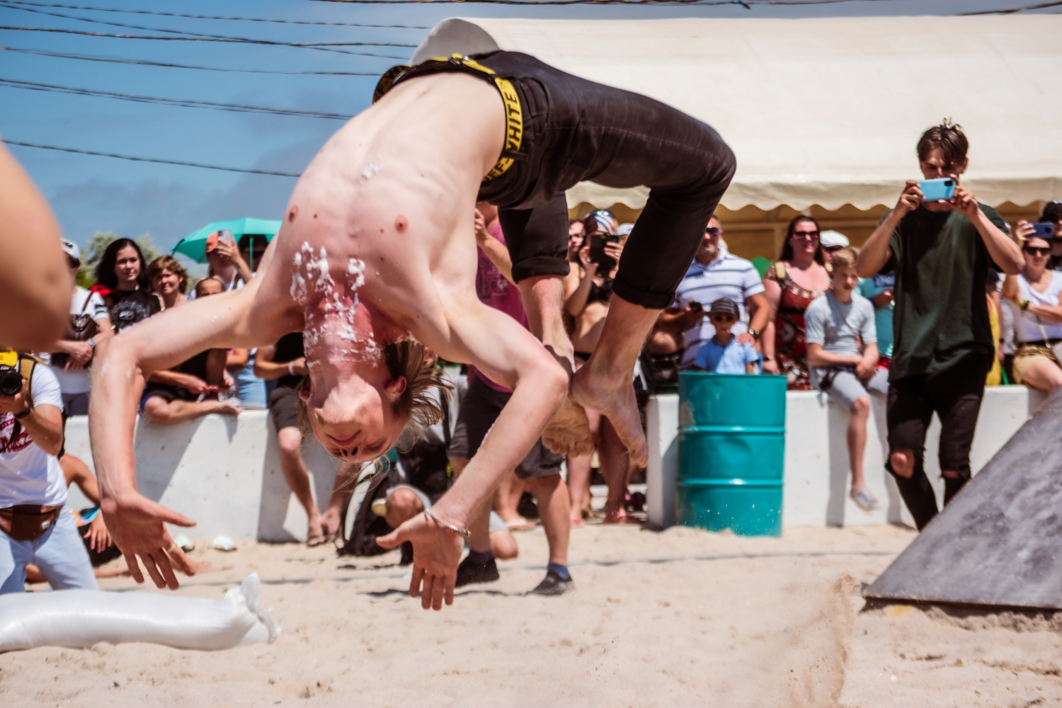Для любителей экстремальных видов спорта на фестивале организовали гонки на мотоциклах «эндуро». Это отдельный вид мотоспорта и велоспорта, предполагающий агрессивный стиль езды по бездорожью и на специализированных спортивных трассах. Для гонщиков «эндуро» организаторы сделали трассу на пляже протяженностью 100 метров, на которой были разные искусственные преграды и песчаные насыпи.
