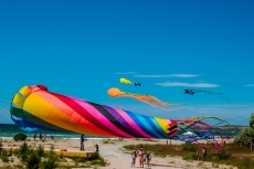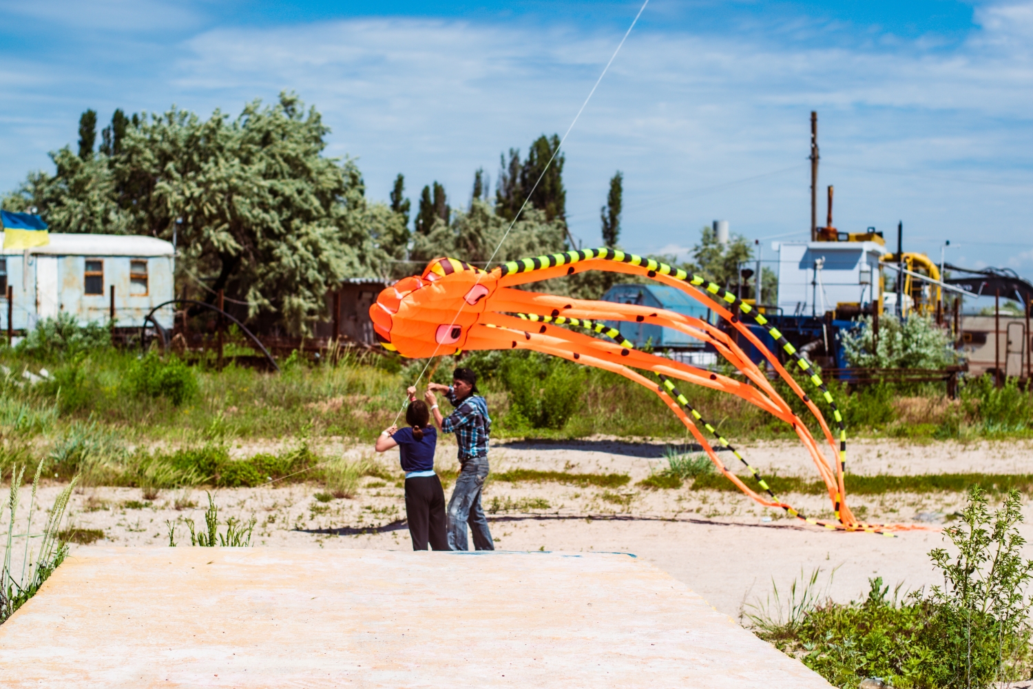 Также, на пляже участники фестиваля запустили гигантских воздушных змеев (кайты, — прим.). Кайтеры приехали из разных городов Украины: Николаева, Скадовска, Кривого Рога, Никополя.